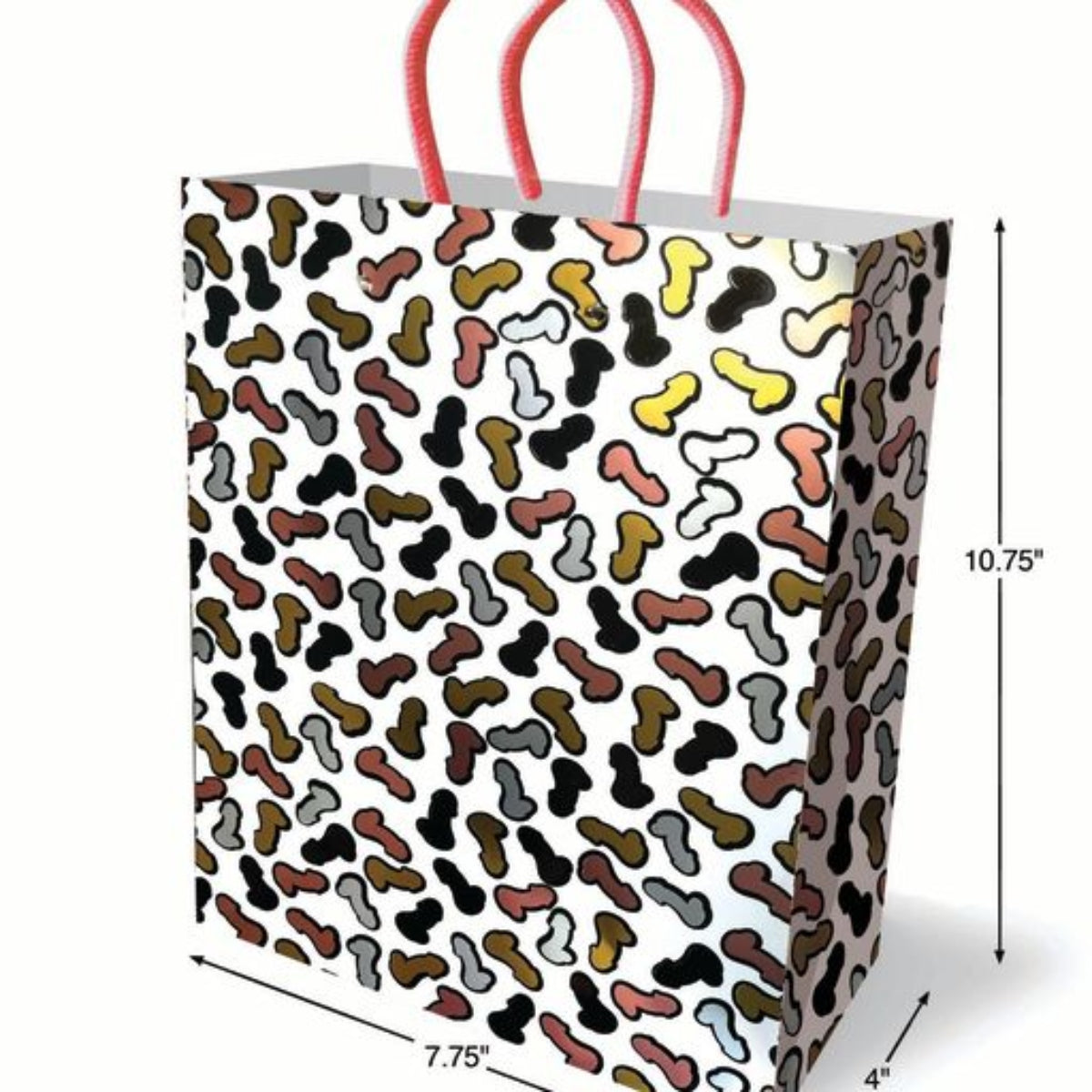 From our top-selling Glitterati bachelorette line this medium-size gift bag is constructed with high-quality materials and beautifully designed for the elegant and playful bride. The Glitterati line features our signature metallic foil stamped gold silver rose gold and bronze penises and is perfect for bachelorette or wedding shower gifts.