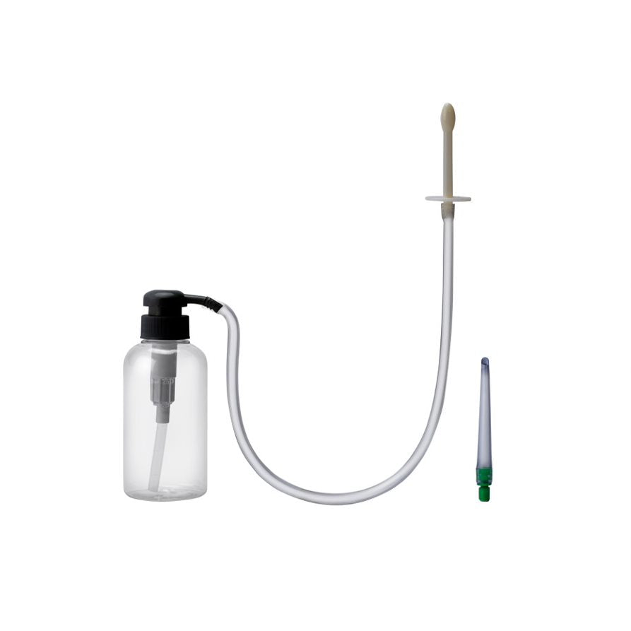 Prowler RED Bottle DoucheThe Prowler Red Bottle Douche is a convenient pump enema that includes everything you need for quick and effective cleansing. The bottle can hold up to 300mL of liquid and has a pump top to allow for easy water flow. The bottle attaches to an included hose that measures 49cm in length. The set includes two nozzles to choose from depending on your preference. One nozzle features a smooth tapered tip while the other is slightly rounded for added stimulation. This set is discreet easy to store and travel-friendly. Measurements (approx.)Nozzle 1 Insertable Length: 7cmNozzle 2 Insertable Length: 8.5Nozzle 1 Insertable Girth: 3.5cmNozzle 2 Insertable Girth: 4cm